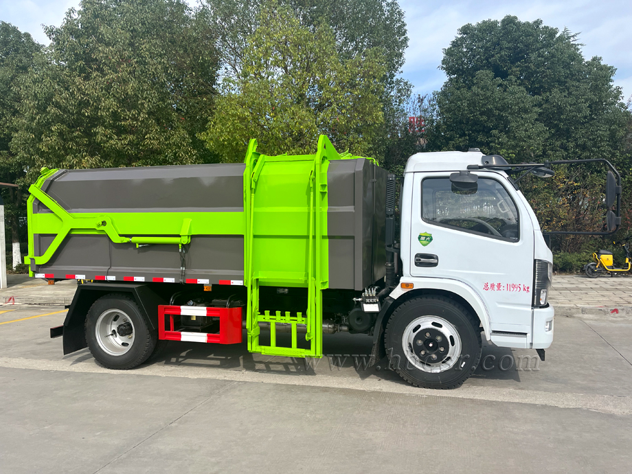 掛桶垃圾車,又稱:自裝卸式垃圾車,主要用于各市政環(huán)衛(wèi)及大型廠礦部門(mén)運(yùn)載各種生活垃圾。整車由密封式垃圾廂、液壓系統(tǒng)、操作系統(tǒng)組成。舉升油制缸(2支)垃圾廂可自吊上放下,上下一次工作循環(huán)時(shí)間≤50S。掛桶垃圾車的特點(diǎn)是一個(gè)車能配幾十個(gè)垃圾桶,能實(shí)現(xiàn)一臺(tái)車與多個(gè)垃圾桶聯(lián)合作業(yè),循環(huán)運(yùn)輸,充分提高了車輛的運(yùn)輸能力。