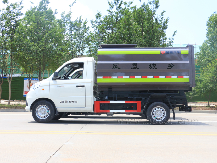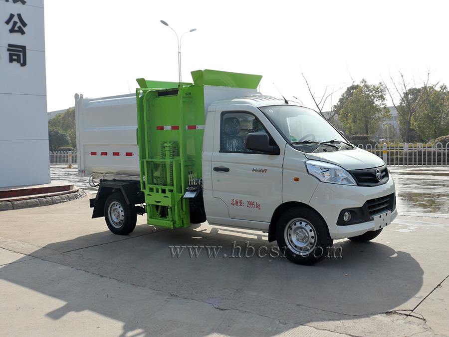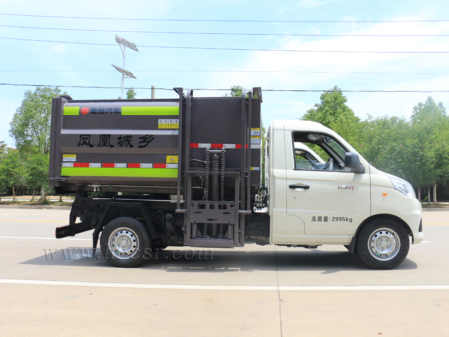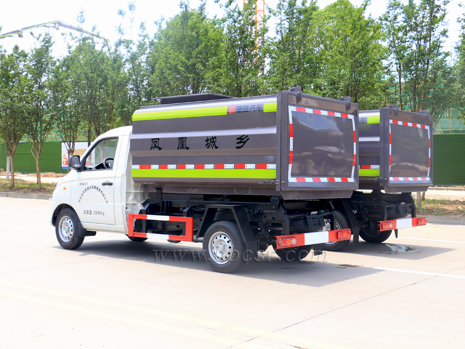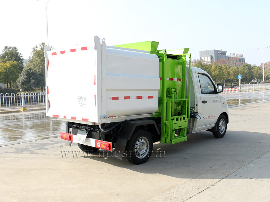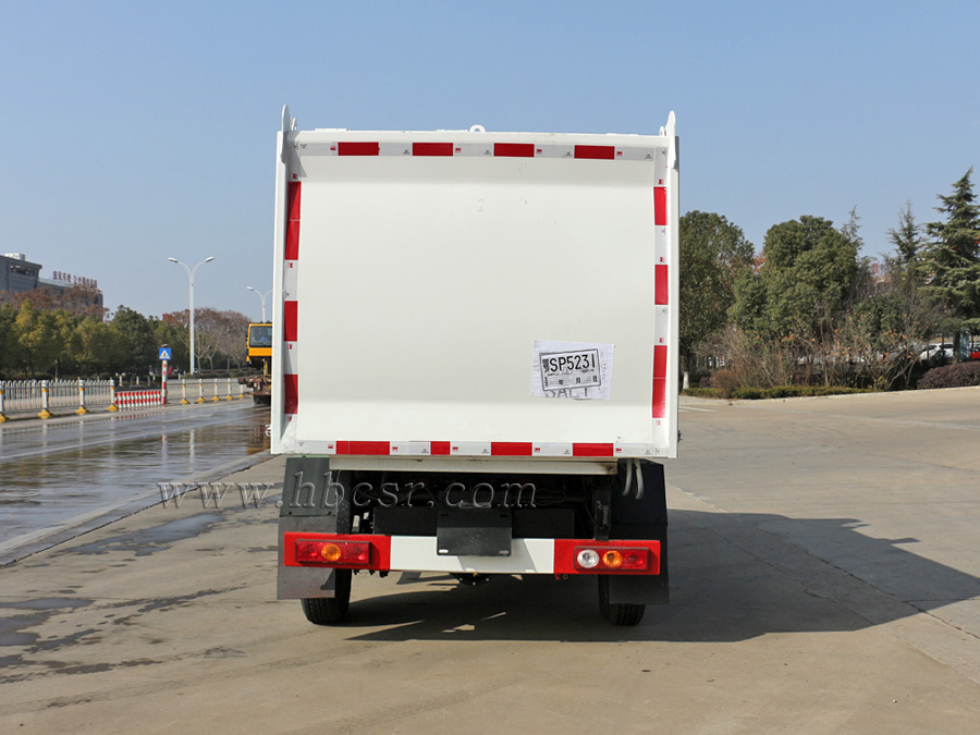該車箱體容積約4立方,箱體前部側(cè)面帶有掛桶提升機(jī)構(gòu),可自動(dòng)舉升垃圾桶倒入垃圾,帶自卸功能,尾部裝有橡膠密封條,防污水滴漏,杜絕二次污染。掛桶垃圾車可根據(jù)客戶要求搭配120升或240升塑料桶和鐵桶。