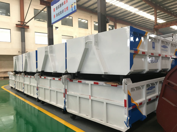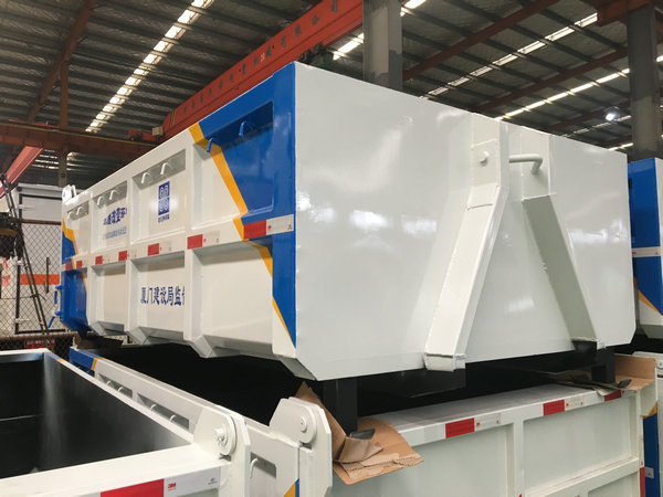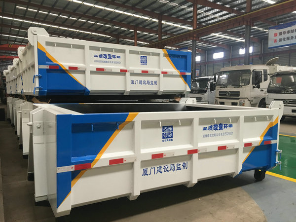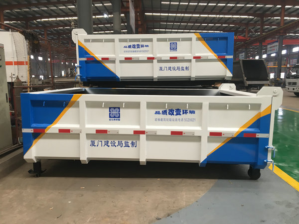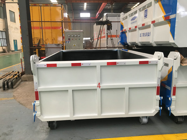 勾臂式垃圾箱又稱車廂可卸式垃圾箱、可移動式垃圾箱、拉臂車垃圾箱、生活垃圾收集轉運箱,與勾臂車(車廂可卸式垃圾車)配套使用,是目前國內(nèi)市場上垃圾收集轉運的主要盛裝轉運工具,應用廣泛,循環(huán)使用方便,一車配套多個轉運箱使用,效率高,造價低等優(yōu)勢受到廣大環(huán)衛(wèi)事業(yè)工作人員的大力推薦及使用。主要運輸介質為:生活垃圾,密度約為0.6噸/立方米,主要利用底盤自帶發(fā)動機為動力,通過變速箱上安裝取力器帶動油泵驅動液壓油缸實現(xiàn)機械臂運作的勾臂車對垃圾箱的上鉤、下卸、自卸等功能。