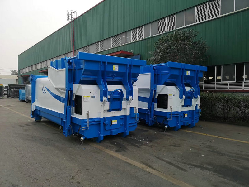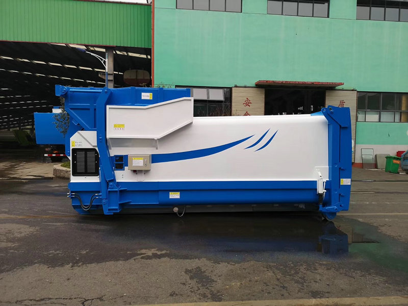 4、移動式壓縮箱主要由反轉進料口、壓縮機、垃圾箱、動力及**單元組成。