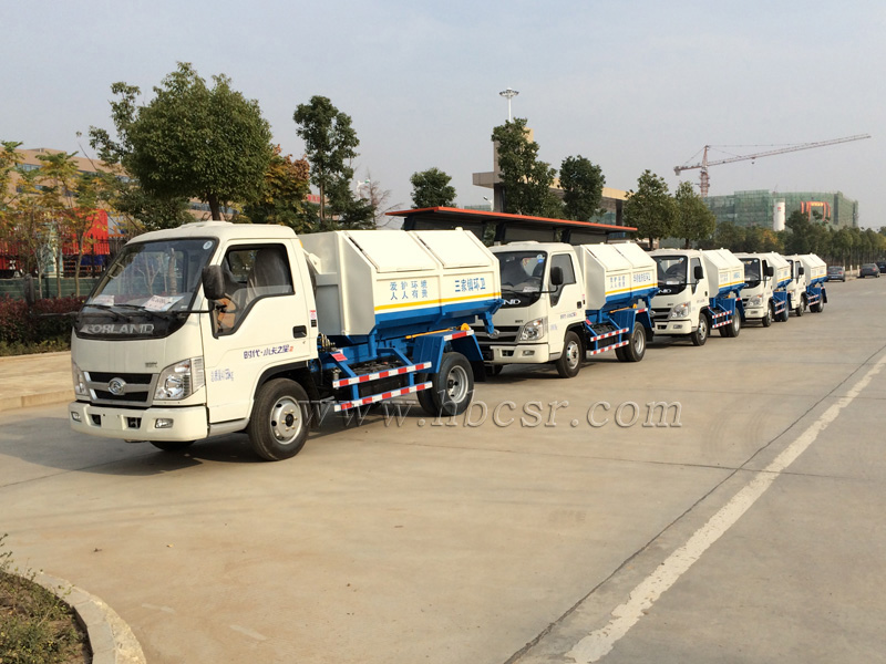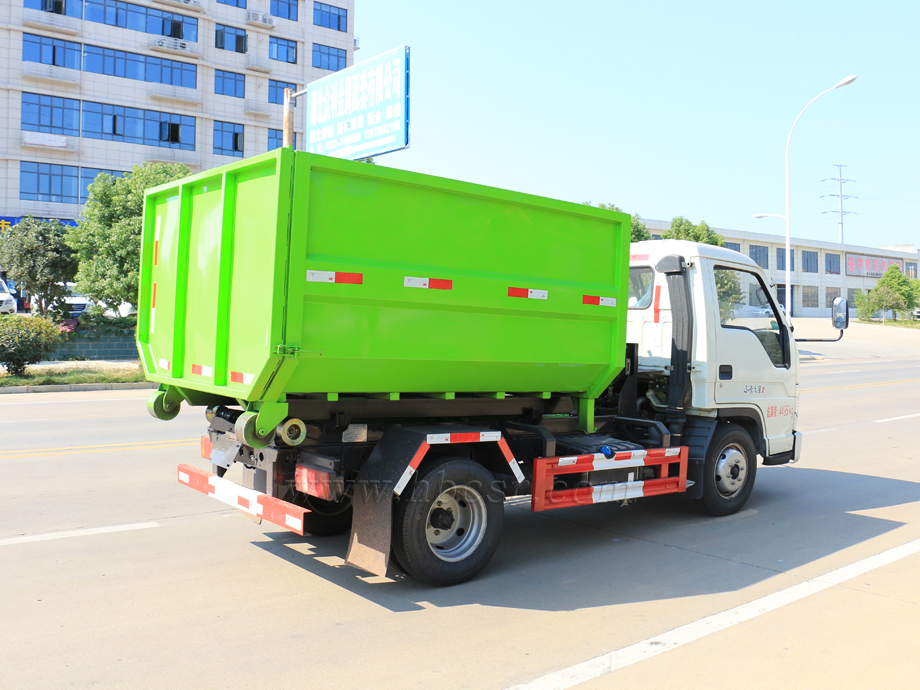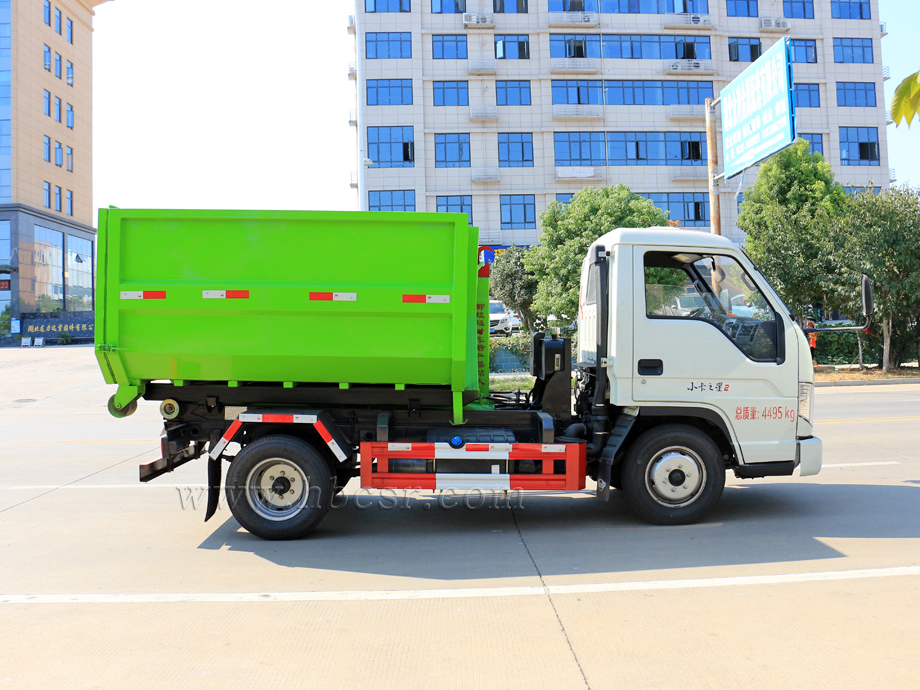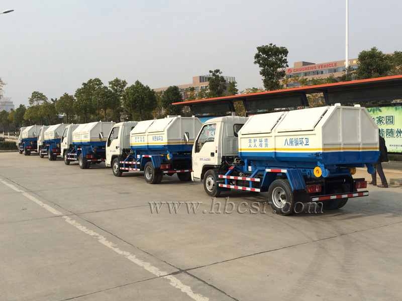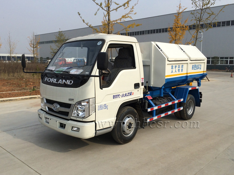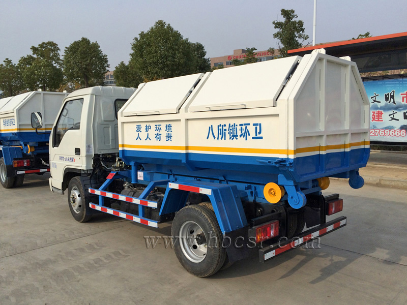 勾臂垃圾車(chē)又名車(chē)廂可卸式垃圾車(chē),該車(chē)廣泛適用與城市、街道、物業(yè)小區(qū)的垃圾處理,可一車(chē)配備多個(gè)斗,各個(gè)垃圾點(diǎn)放置多個(gè)垃圾斗,一輛車(chē)就可以維持?jǐn)?shù)個(gè)垃圾收集站的運(yùn)轉(zhuǎn),效率高,且箱體為密封式設(shè)計(jì),不會(huì)造成二次污染。該車(chē)的箱體部分完全由液壓系統(tǒng)來(lái)控 制,在平日里可將車(chē)載垃圾箱放置到各個(gè)垃圾收集站,待垃圾收集滿(mǎn)后,該車(chē)可直接開(kāi)赴垃圾站,通過(guò)液壓系統(tǒng)的操控,可將垃圾車(chē)后座上加裝的勾臂放下,掛住站內(nèi)垃圾箱前端的連接點(diǎn),將垃圾箱拉至車(chē)體的后座上,此時(shí)即可啟動(dòng)車(chē)輛,將垃圾運(yùn)送至垃圾處理站內(nèi),進(jìn)行自卸式傾倒。