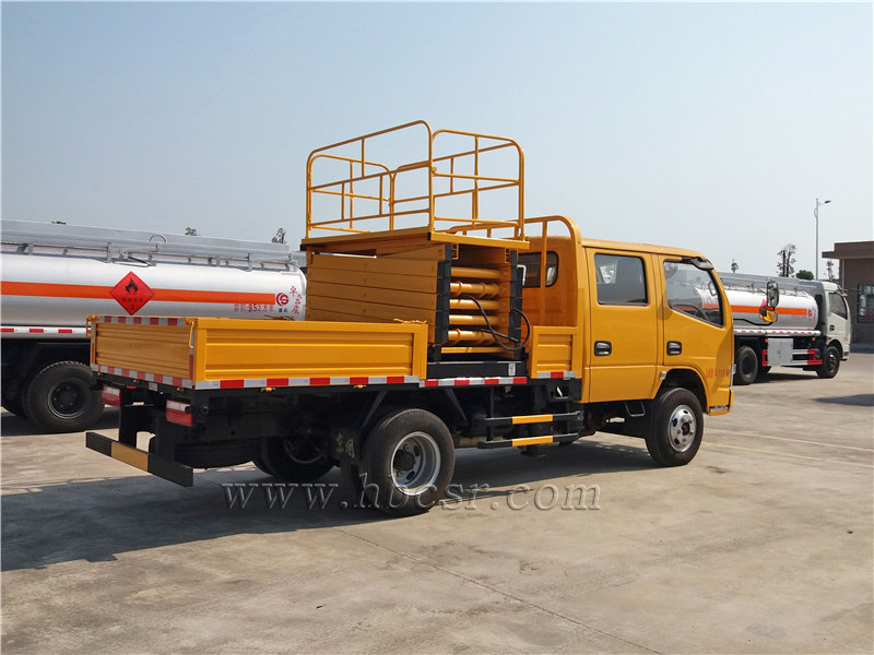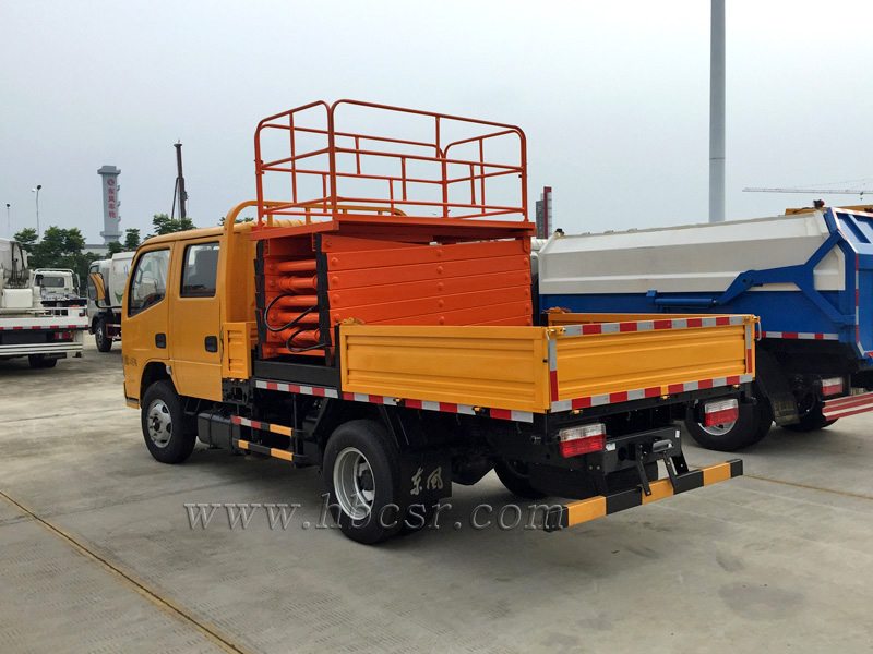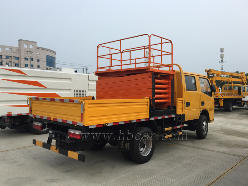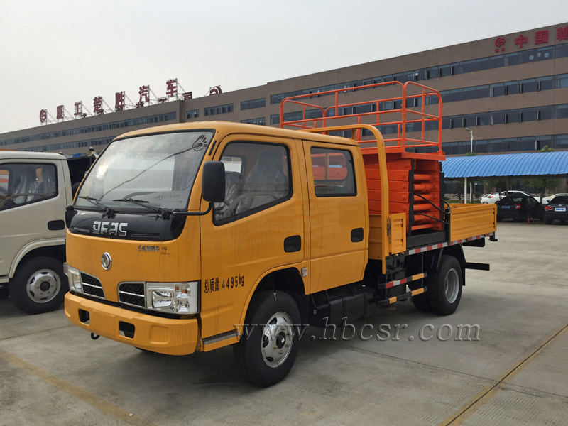升降平臺(tái)車(chē)又名升降車(chē)、登高車(chē)、剪叉式登高車(chē)、高空作業(yè)車(chē);該車(chē)帶貨廂(方便攜帶常規(guī)貨物),雙排座(駕駛室可乘坐5人),升降平臺(tái)作業(yè)高度10米,帶兩個(gè)液壓支腿,吊藍(lán)額定載荷小于或等于500KG,工作壓力14MPA。該車(chē)為藍(lán)牌車(chē)型,持C證駕駛證可開(kāi),方便靈活。東風(fēng)10米升降平臺(tái)高空作業(yè)車(chē)憑借車(chē)輛小巧、靈活、作業(yè)效率高、外形美觀,結(jié)構(gòu)簡(jiǎn)單,操作方便,安全可靠,外型美觀,廣泛適用于市政、電力、路燈、廣告、通訊、園林、**、工礦、碼頭等多種系統(tǒng)的高空作業(yè)。