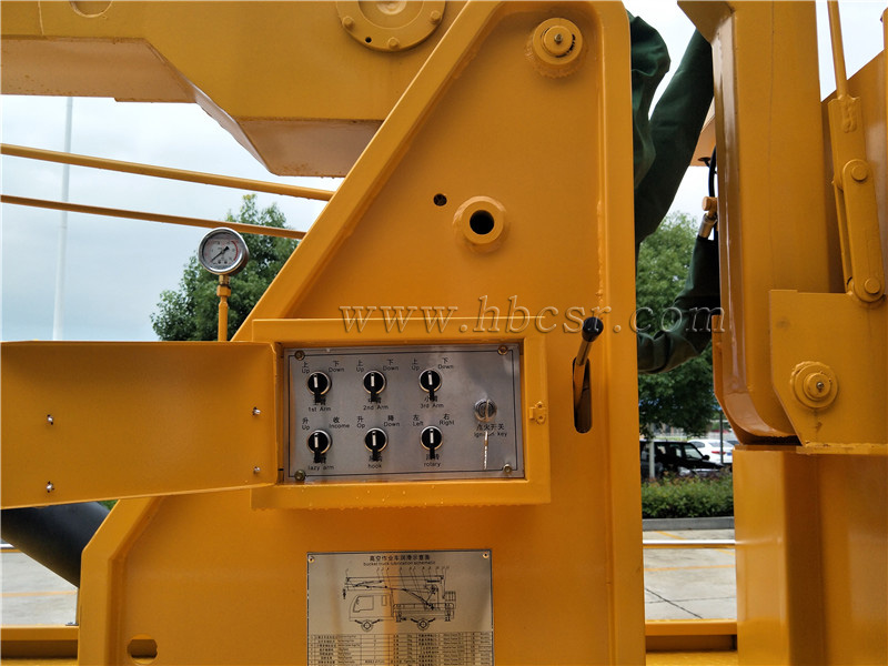 在作業(yè)斗內(nèi)和回轉座上均設有操縱裝置, 遠距離**發(fā)動機的啟動/停止、高速/低速,采用電液比例閥**臂的動作,平穩(wěn)性好,工作臂可左、右360°連續(xù)旋轉,靠連桿機構自動維持作業(yè)槽水平,主泵出現(xiàn)故障時可操縱應急泵下降作業(yè)槽,具備夜間照明,可起吊重物。