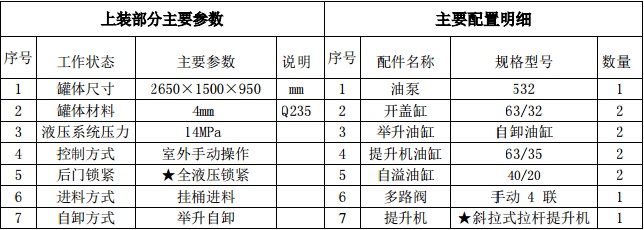 罐體采用優(yōu)質(zhì)碳鋼板材,罐體內(nèi)部帶固液分離功能(全推推板,不銹鋼泔水分離網(wǎng)板),罐內(nèi)加熱功能(用于嚴寒地帶防止罐內(nèi)餐飲垃圾凍結(jié)凝固,采用柴油燃燒機加熱,加熱速度快效果好,可設(shè)置高低溫實現(xiàn)自動溫控)全液壓操