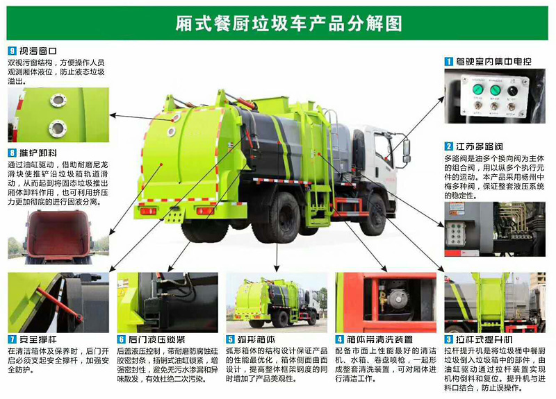 餐廚垃圾車,又稱餐余垃圾車余廚垃圾車或者泔水車,餐廚垃圾車是垃圾車中的一種,是用于收集和運輸生活垃圾、食品垃圾(泔水)及城市淤泥的專用車輛。隨著我國餐飲業(yè)的發(fā)展,我國現(xiàn)有酒店、餐館近350萬家,每天產(chǎn)生的餐廚垃圾數(shù)量十分驚人,其收集轉(zhuǎn)運方式多樣。以餐廚垃圾為對象的餐廚垃圾車也飛快發(fā)展。改裝部分具有裝、卸垃圾自動化程度高、工作可靠、密封性好、裝載容積大、…