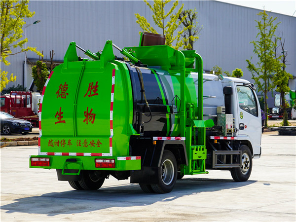 東風(fēng)小多利卡餐廚垃圾車采用東風(fēng)原裝底盤,東風(fēng)D6系列駕駛室,3308mm軸距,5檔變速箱,7.00R16鋼絲胎,3.5噸后橋,氣剎制動,動力轉(zhuǎn)向,ABS,空調(diào)。  上裝配置:罐體容積4~5m3,罐體厚度4.5mm,配備120L/240L掛桶提升翻轉(zhuǎn)機構(gòu),液壓系統(tǒng),后蓋液壓鎖緊開啟,罐體可以舉升自卸,尾部帶自流閥;用于運輸液態(tài)垃圾,其特點操作簡單,密封性好,無泄漏,無異味;可選裝固液分離功能,推板擠壓功能,常用于餐館的垃圾轉(zhuǎn)運處理 。
