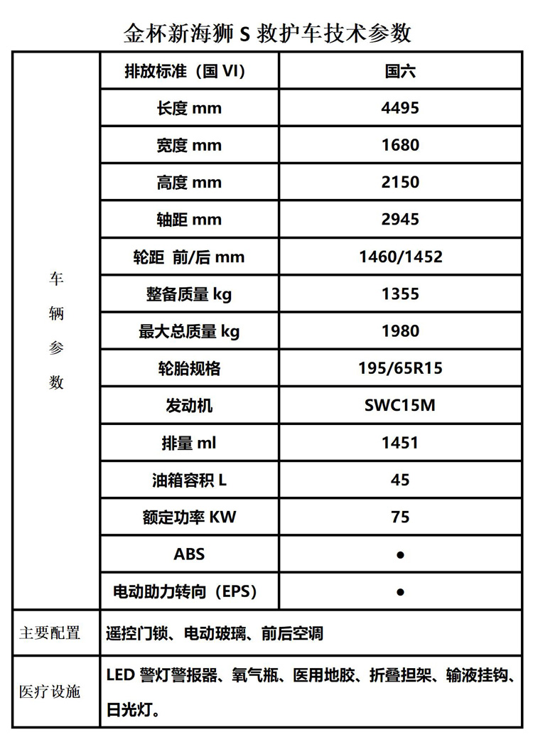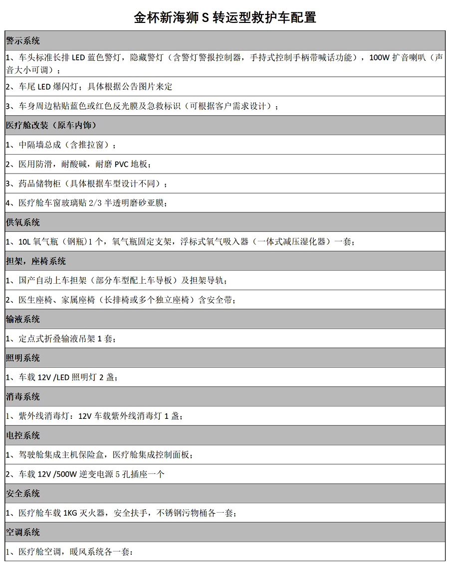 金杯新海獅S轉(zhuǎn)運(yùn)型救護(hù)車