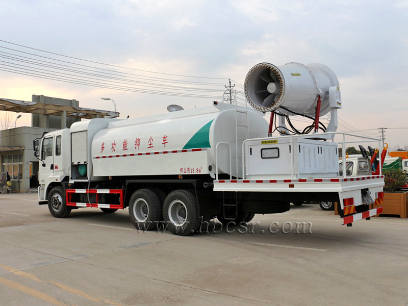 具有前沖后灑、側(cè)噴(更換噴頭后變?yōu)閭?cè)花灑)、后置式工作平臺(帶踏 梯,四周有安全護欄)、平臺上設(shè)置有高壓水炮(可360°旋轉(zhuǎn),可調(diào)成 柱狀**大射程28米,也可調(diào)成霧狀**大射程14米,可調(diào)成:直沖狀、大雨 、中雨、小雨、毛毛雨),整車灑水寬度大于14米.配備優(yōu)質(zhì)大功率專用 灑水泵,取力器,雜物過濾網(wǎng),國標通用65型消防接口(可通過消防栓加水 )、1套自流球閥系統(tǒng)(可自吸自排,**大吸程6米),2根引水鋼絲膠管 (帶陰陽快速接頭),配鎖,水位計,作業(yè)高音喇叭.兩側(cè)及后加強型保險 杠,防滑爬梯,膠管儲存筒.