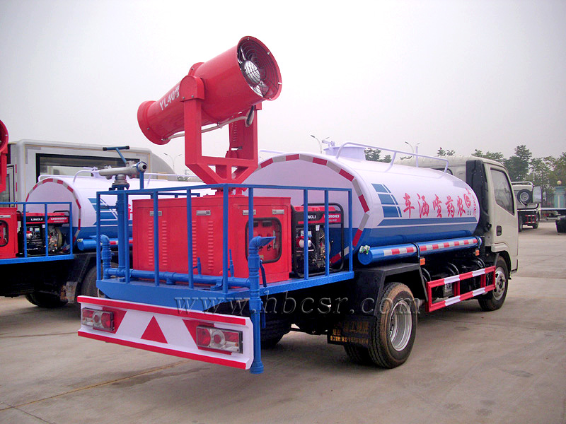 罐體實際容積為:5(標(biāo)準(zhǔn))立方米,整車帶前沖、后灑、側(cè)噴噴頭、遠(yuǎn)程高壓水炮。平時可用于道路灑水、綠化澆水、噴灑農(nóng)藥、噴霧降塵,關(guān)鍵時刻高壓水炮還可用于應(yīng)急消防。罐體內(nèi)部可按用戶要求加做特殊耐酸、耐堿防腐處理,管道**低點設(shè)置防凍裝置,噴霧機組可手動操作或遠(yuǎn)程遙控操作。噴藥霧炮可上下、及左右360度旋轉(zhuǎn)噴藥,一個即可操作全車。罐體前端倉內(nèi)放置噴霧機配套的汽/柴油發(fā)電機,罐體兩側(cè)壁上均開有大量排氣孔,方便散熱,罐體后部工作平臺上放置風(fēng)送式遠(yuǎn)射程噴霧機。