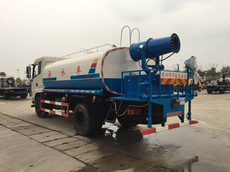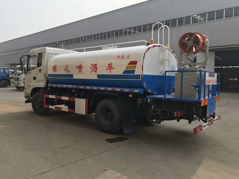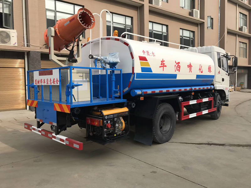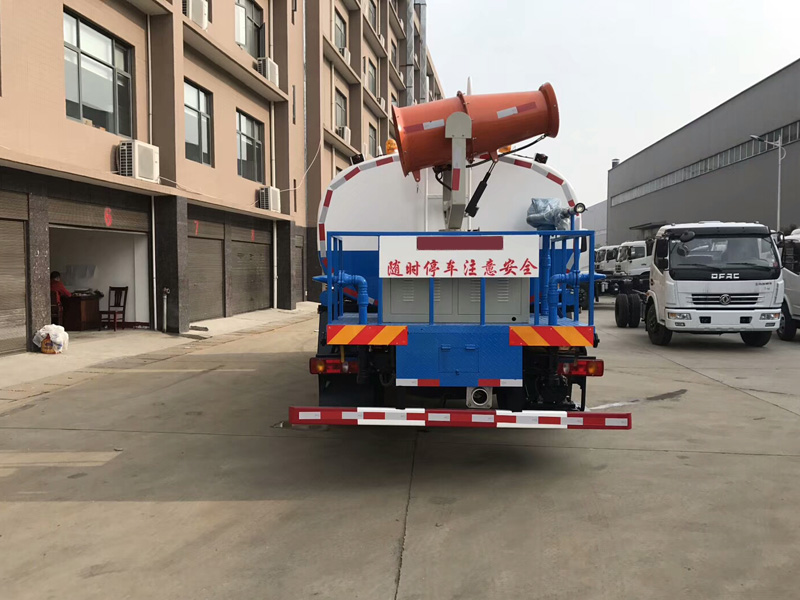 罐體實際容積為:10-12(標準)立方米,整車帶前沖、后灑、側(cè)噴噴頭、遠程高壓水炮。平時可用于道路灑水、綠化澆水、噴灑農(nóng)藥、噴霧降塵,關(guān)鍵時刻高壓水炮還可用于應(yīng)急消防。罐體內(nèi)部可按用戶要求加做特殊耐酸、耐堿防腐處理,管道**低點設(shè)置防凍裝置,噴霧機組可手動操作或遠程遙控操作。噴藥霧炮可上下、及左右360度旋轉(zhuǎn)噴藥,一個即可操作全車。罐體前端倉內(nèi)放置噴霧機配套的汽/柴油發(fā)電機,罐體兩側(cè)壁上均開有大量排氣孔,方便散熱,罐體后部工作平臺上放置風送式遠射程噴霧機。