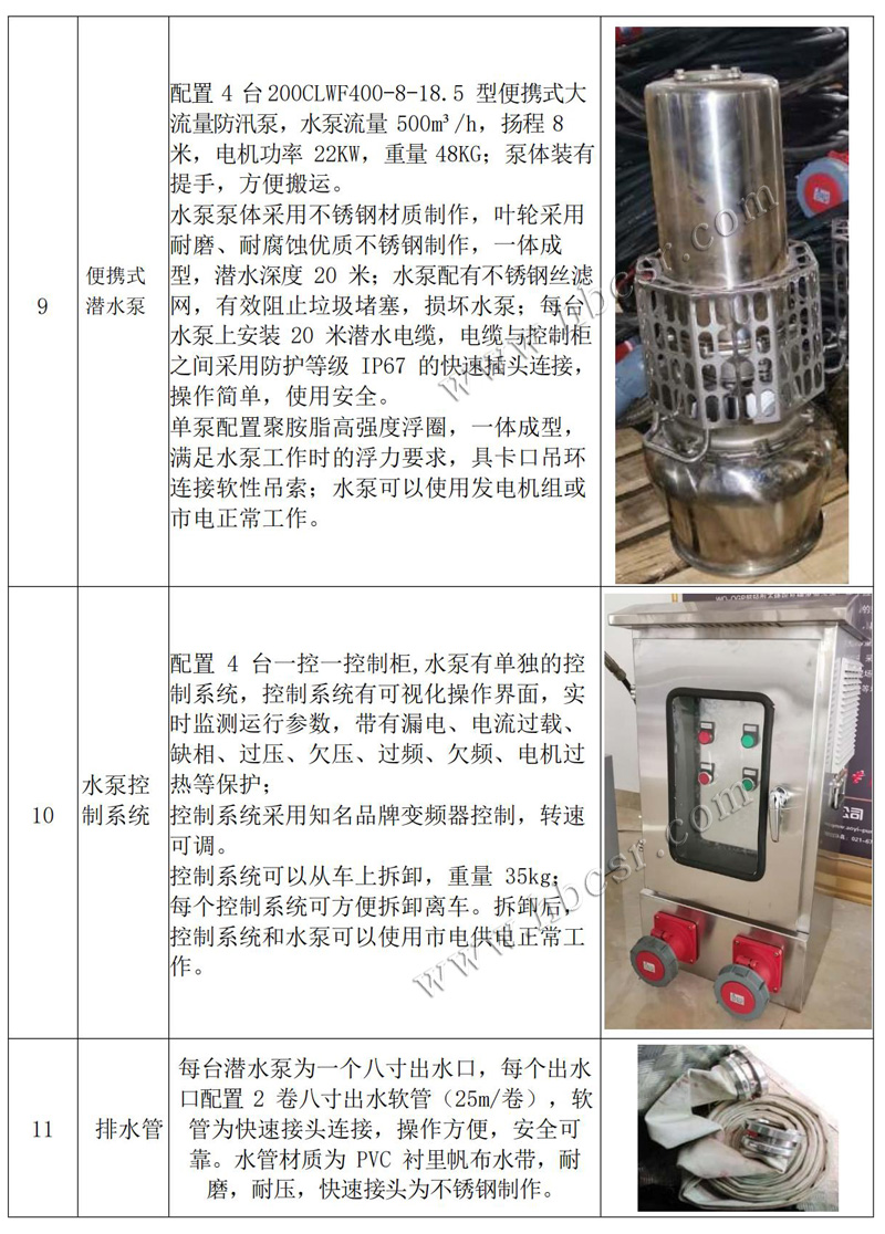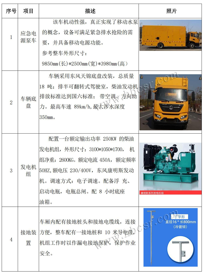 • 【東風天錦應急電源車/防汛排水車 主要技術(shù)參數(shù)】