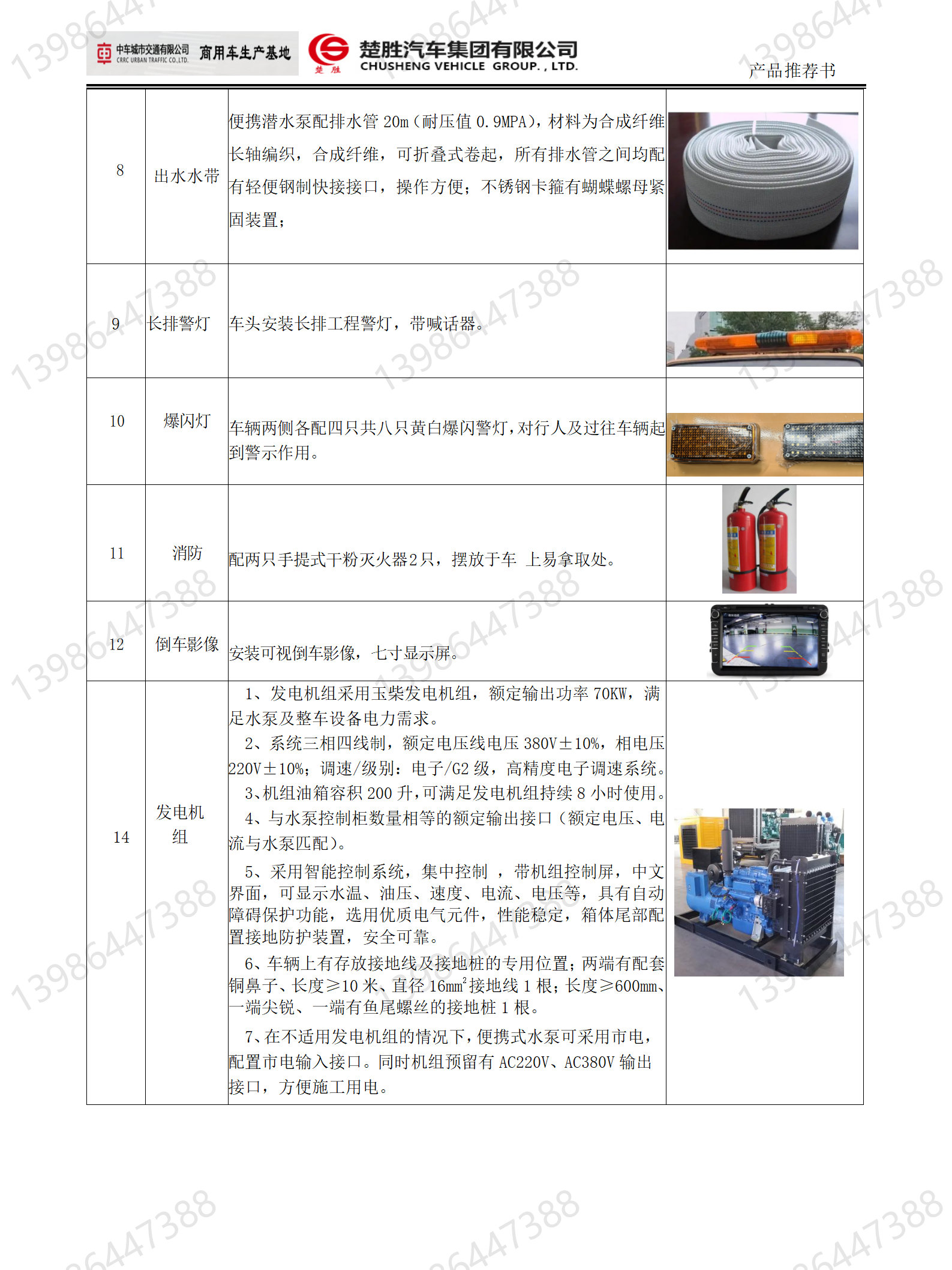 楚勝汽車集團(tuán)有限公司主要生產(chǎn)各類救險(xiǎn)車、電源車、消防車、移動(dòng)照明車,市政環(huán)衛(wèi)車系列:灑水車、垃圾車(勾臂/擺臂/掛桶/壓縮/對接/密封自卸/餐廚垃圾車等)、吸糞吸污車、高壓清洗車、道路清掃車(掃路車/洗掃車/吸塵車等);罐式車系列:油罐車/流動(dòng)加油車、化工液體運(yùn)輸車、粉粒物料運(yùn)輸車等;工程車系列:自卸車、隨車吊、高空作業(yè)車、平板運(yùn)輸車、混凝土攪拌車、清障車;半掛車系列:半掛油車、半掛化工罐車、集裝廂運(yùn)輸半掛車、低平板半掛車等、全掛車系列六大類,130多個(gè)品種,年生產(chǎn)能力達(dá)萬余輛。