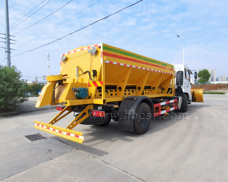 1、用于城市交通與高速公路道路除雪除冰,實(shí)施除雪作業(yè)時(shí),車后拋灑盤(pán)將融雪劑均勻撒到路面上,提高融雪冰點(diǎn),有效防止路面結(jié)冰可根據(jù)作業(yè)環(huán)境調(diào)節(jié)拋灑盤(pán)液壓馬達(dá)轉(zhuǎn)速。嚴(yán)格控制拋灑量,可有效除雪除冰,將污染控制到最低程度。