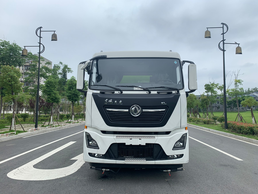 該車采用東風天龍后雙橋原裝二類汽車底盤加裝洗掃上裝部分生產(chǎn)而成,4350+1350mm軸距,天龍平頭一排半標準頂豪華駕駛室,帶原廠冷暖空調(diào),東風康明斯290馬力或東風商用360馬力發(fā)動機,陜齒9檔變速箱,5.5T前橋,10T雙后橋,11.00鋼絲胎,帶ABS。