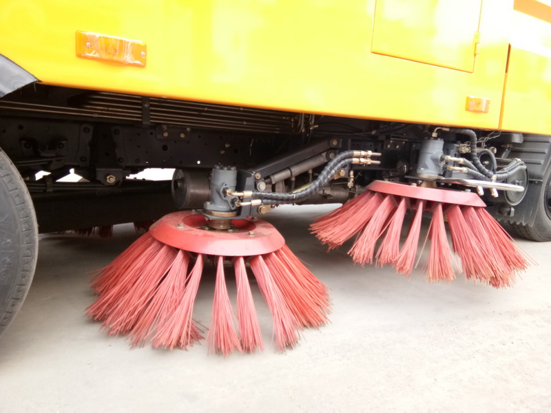 11、左右前刷盤可**或聯(lián)動:使車輛在工作中能夠有選擇地使用右前掃或左前掃工作,使得靠快車道一側(cè)的工作機構(gòu)可在選擇左掃的情況下不伸出車體既減小了占道寬度,提高了作業(yè)和通行車輛的安全,又減少了掃刷的磨損,降低了運行成本。