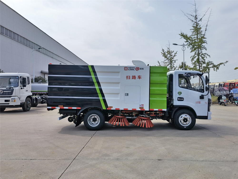1、采用吸掃結(jié)合的方式收集垃圾,濕式除塵、電液**,液壓傾翻卸料的作業(yè)方式對(duì)路面進(jìn)行清掃作業(yè)。