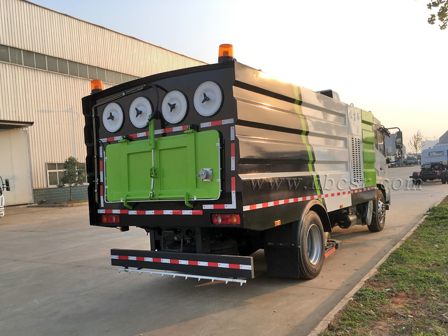 天錦洗掃車具有路面清掃、路面洗掃、路緣和路緣石立面洗刷、底壓沖洗和噴霧降塵等功能,特別適用于城市廣場(chǎng)、道路路面路緣的高清潔度保