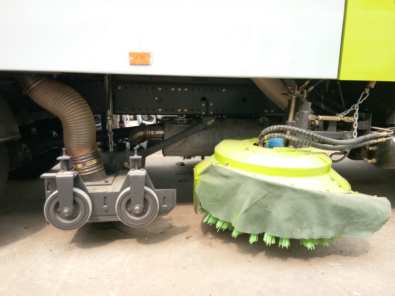 2)采用“中置兩立掃+真空吸塵罩+中置寬吸嘴+左右四吸塵管”的布置方式。大掃刷設(shè)計(jì),可清除道路臺(tái)階死角垃圾,吸嘴能隨地面狀況自動(dòng)找平,清掃能力大,清掃速度快。