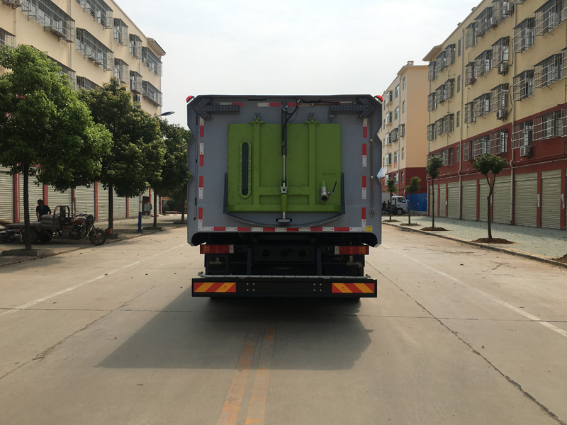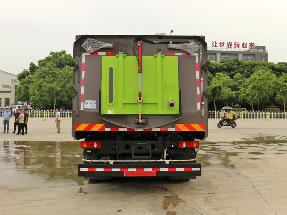 16)污水箱內(nèi)采用大平面斜坡結(jié)構(gòu),**大卸料角度可達50度,更易于傾倒垃圾。污水箱內(nèi)設(shè)置了防溢滿報**裝置和高壓噴淋清洗裝置,防溢滿報**裝置可防止污水作業(yè)時從吸管溢出,造成二次污染;高壓噴淋清洗裝置在傾倒垃圾后可對污水箱進行自動清洗,大大減輕了操作人員的勞動強度。