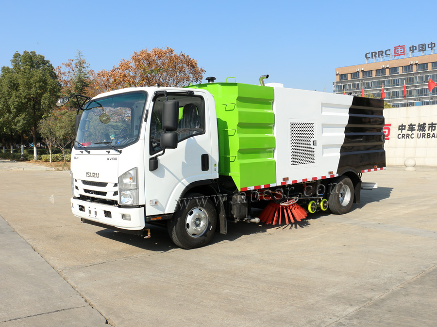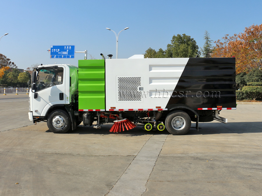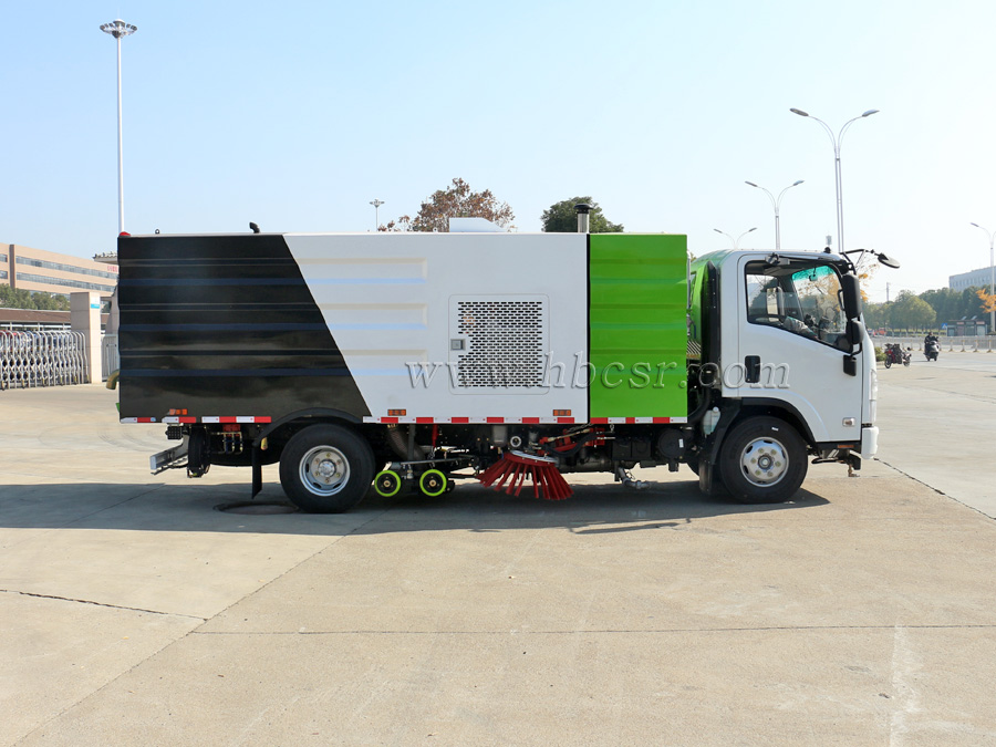 ★ 五十鈴洗掃車采用2掃盤與吸盤進行掃吸結(jié)合,掃吸能力強;兩側(cè)掃把可同時工作,也可單側(cè)作業(yè)。清掃裝置機構(gòu)簡潔可靠,掃盤有防碰撞自動避讓功能,可根據(jù)地面泥沙嚴重程度及行車速度選擇掃盤的清掃方式;吸嘴為后置浮動式,可自動調(diào)節(jié)適應(yīng)地面凹凸不平的狀況;清掃時可噴霧狀水,在節(jié)水的同時全面杜絕二次環(huán)境污染。