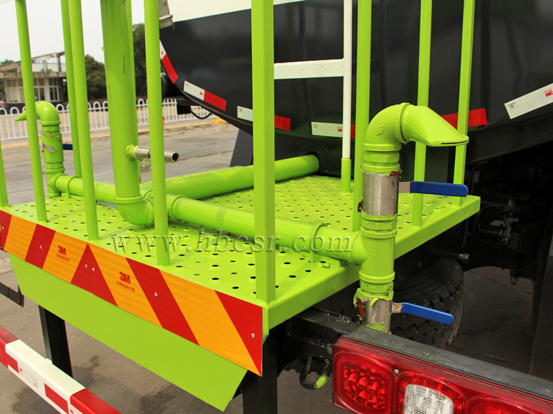 后噴灑:裝有兩只可噴淋后灑裝置,主要對路面進行保潔和壓塵,呈扇形噴灑時灑水寬度可達10m以上。